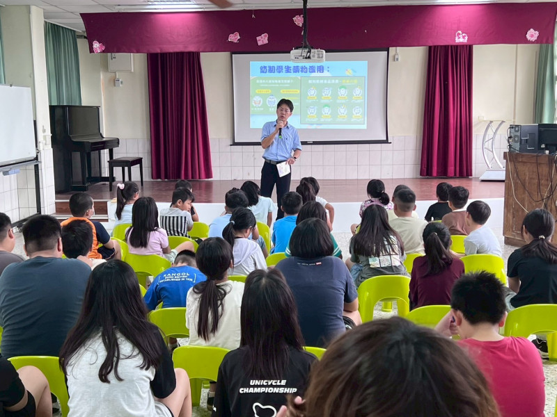 強調「五不原則」,包括:不接受、不試用、不購買、不持有、不轉讓,並提醒學生面對誘惑要大聲說「不!」,保護自己與家人。