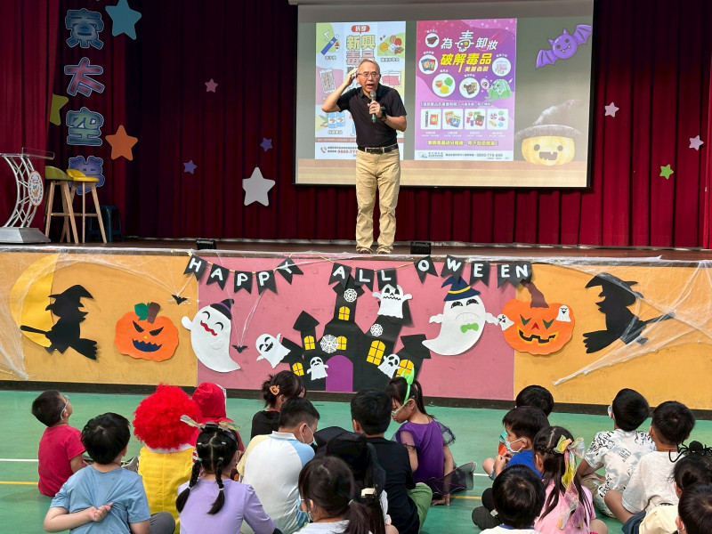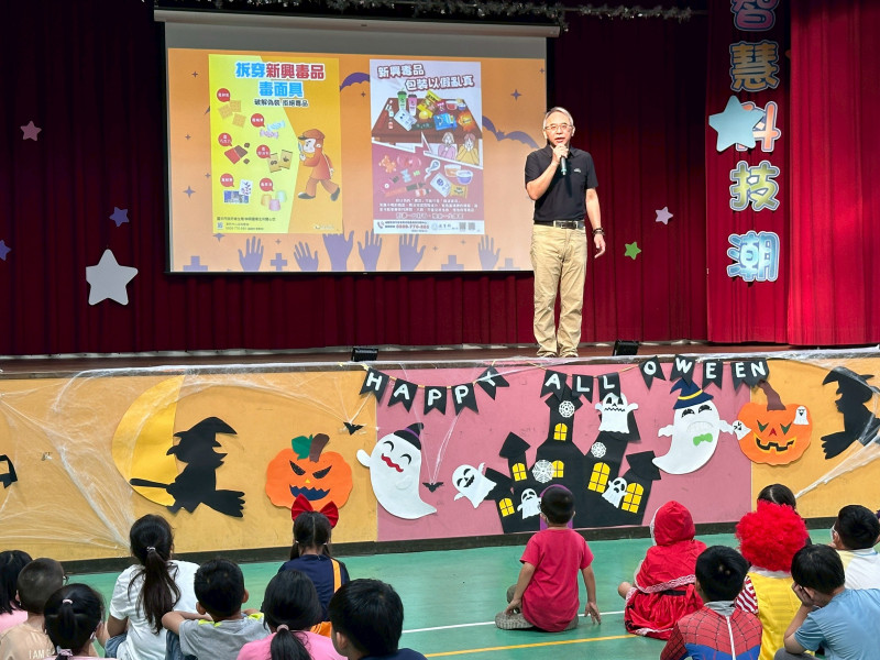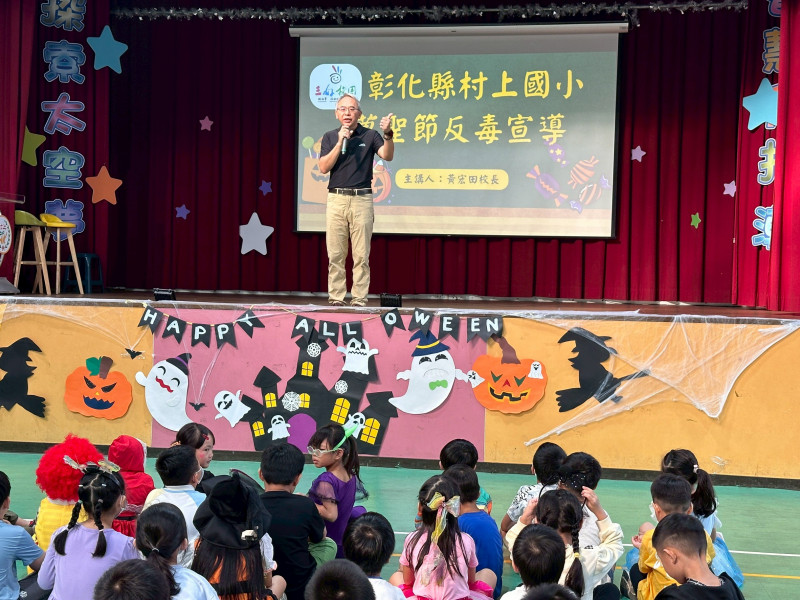 因應萬聖節活動來臨,本校黃宏田校長進行新興毒品防毒教育宣導,說明現階段新興毒品盛行,鮮豔華麗的包裝裡免可能藏有毒品之危害,提醒學生不宜接收陌生人及來路不明之糖果包裝,以免誤食。