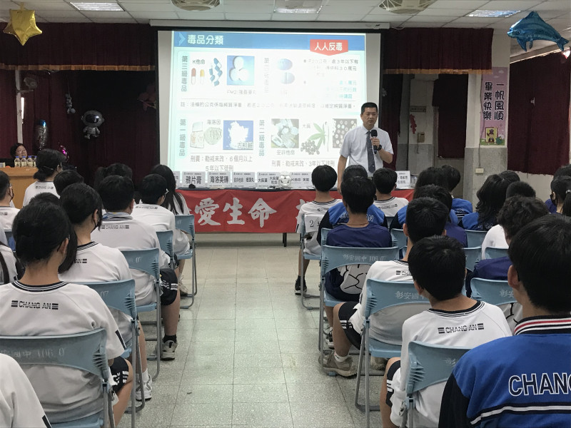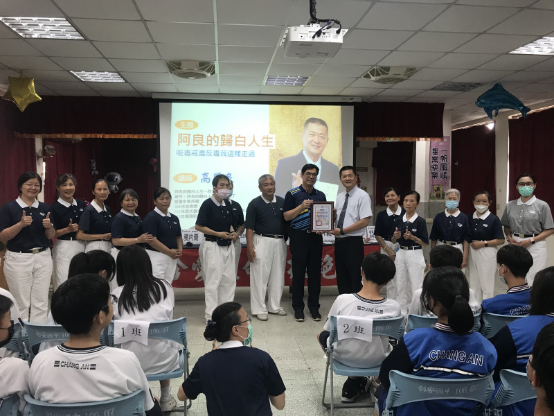 1.高師兄首先播放影片「阿良的歸白人生」讓大家瞭解高師兄的過往經歷及施用毒品後造成可怕的影響。 2.高師兄說明吸毒的開始是從偷爸爸的菸來抽,後來因為身邊朋友的影響開始接觸毒品。 3.高師兄介紹毒品的分類及種類。 4.高師兄告訴大家吸毒後心癮難除,所以加入慈濟致力於反毒宣導,並提醒自己不能再碰毒品。 5.演講內容活潑生趣,學生反應熱烈,內容來自高師兄自身的故事,讓師生更能貼近生活中所發生的人、事、物,對於不明的藥物、飲料及香菸要有所警惕,勿接觸及好奇食用,勿進出不良場所注意周遭環境。 |