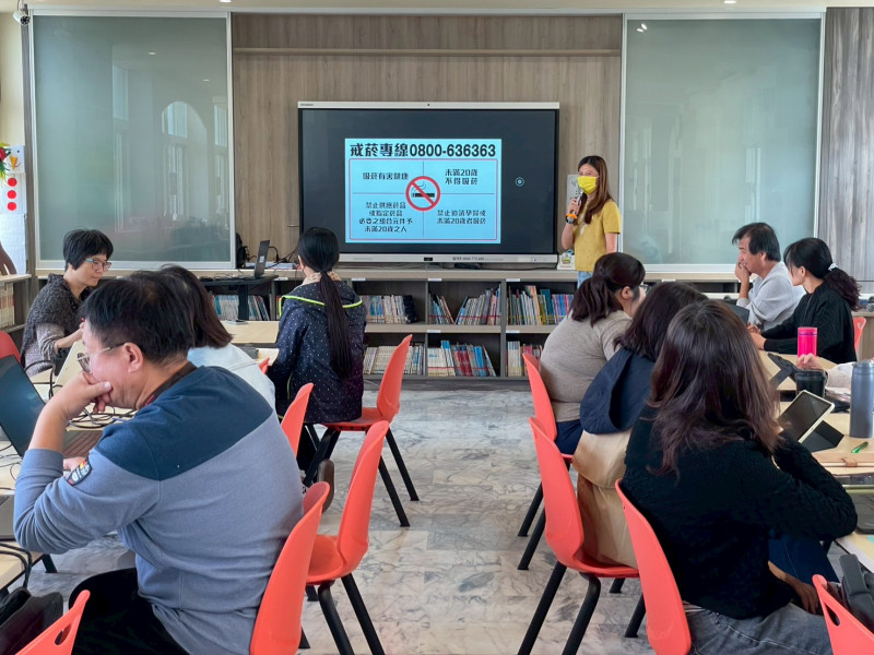 加強宣導反毒相關知能,介紹什麼是電子煙、菸害防制法最新修正條文、戒菸專線宣導、說明新興菸品的外觀及特性,進行教師增能,令老師獲益良多。
