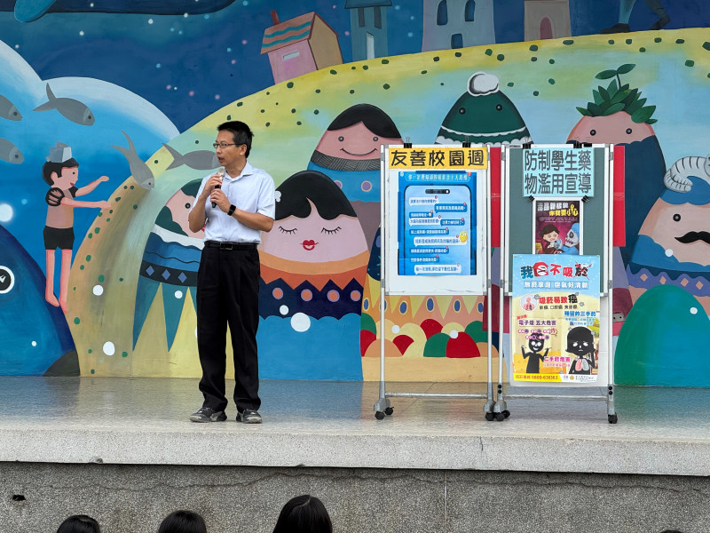 校長於朝會時間進行拒絕短影音風險、交通安全、藥物濫用及毒品防制、拒菸拒檳宣導2