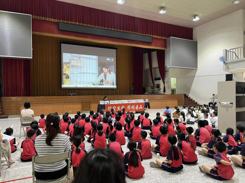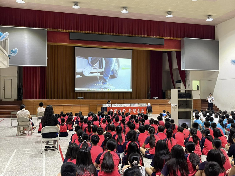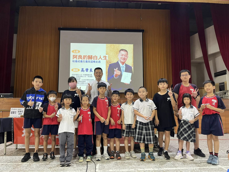 講師以自身的經歷搭配電視劇「阿良的歸白人生」片花進行分享,告訴孩子接觸毒品常常是從身邊的人開始的,要審慎交友;也告訴孩子吸毒對自身、家庭、社會的危害,並坦言自己並未完全「戒毒」,須時時提醒自己,只要一染上毒品,就是一輩子的事情。