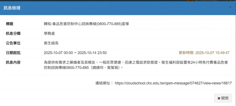 宣導地點 | 學校官網 | 宣導人次 | 800 |