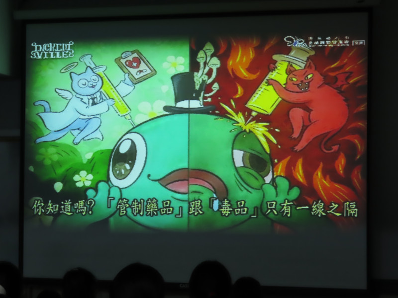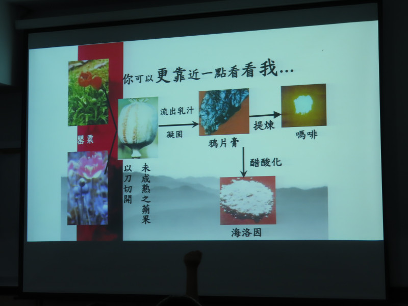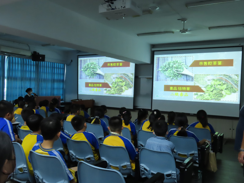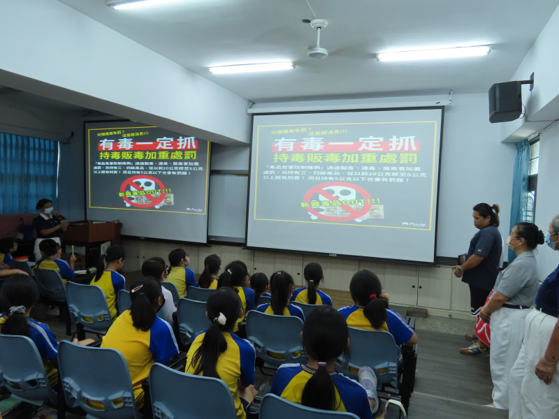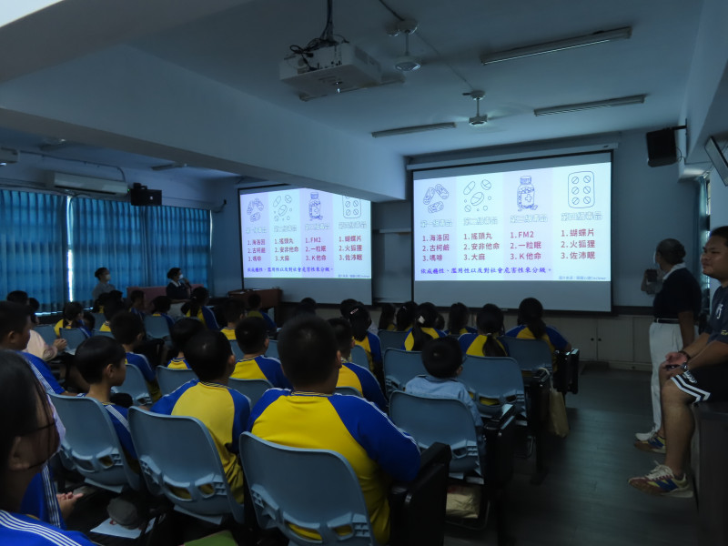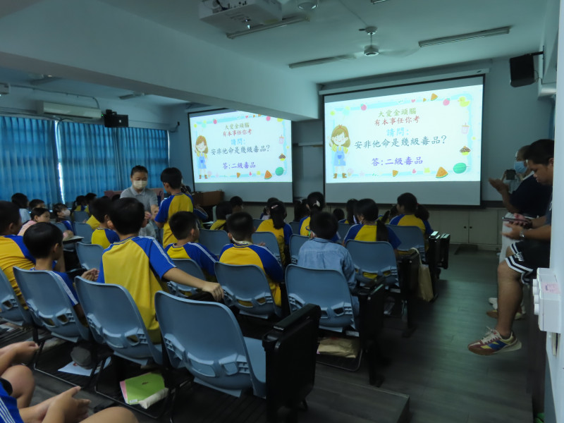 介紹二級毒品-依託咪酯(喪屍煙彈)的可怕及害處,以及介紹罌粟花如何提煉成鴉片、嗎啡、海洛因等,適量運用於醫療用途有益於人體,但過量使用上癮會造成身體危害。後續介紹第一級至第四級毒品的分類以及充滿趣味的有獎徵答以及刑責是非題,學生參與踴躍。