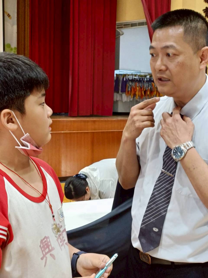 學生主動親近師兄,觀看傷口。